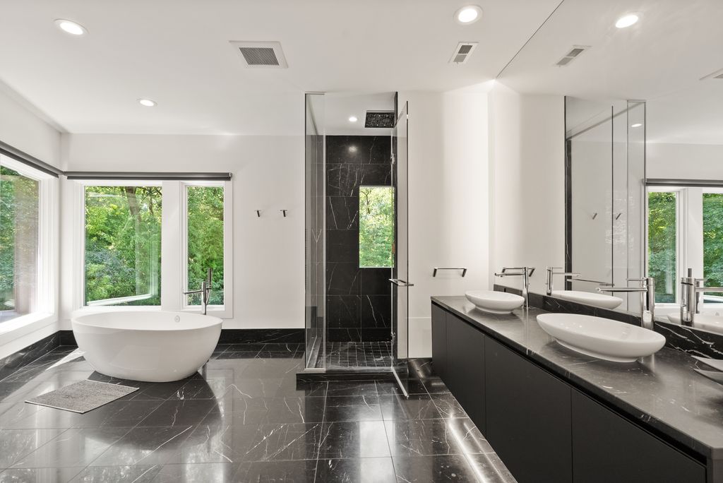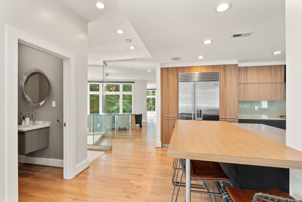 Nestled deep within the rolling hills of the highly sought-after Bellevue Forest neighborhood on a RARE ½ ACRE+ LOT. Complete high-end interior transformation into a contemporary European-inspired retreat, designed by acclaimed DC architect Travis Price! This nearly 7,000 sq.ft. home features 6 bedrooms, 4 full bathrooms, and 2 half bathrooms across 3 levels. Abundant natural light from floor to ceiling windows on every level, skylights, and interior glass walls. Privacy and views of nature from every window. The impressive grand foyer introduces friends and family to the sleek modern design throughout the entire home. The elegant primary suite is a tranquil retreat with its spacious bedroom, coffee bar, large walk-in closet with high-end custom built-ins, private balcony and luxury spa-like bath. Full second kitchen in lower level with stainless appliances. No expense spared on upgrades: Spectacular custom kitchen with imported Italian natural stone counter tops and Gessi plumbing fixtures in kitchen and all bathrooms; floating vanities and wall mounted commodes; indoor & outdoor Yamaha music system; fully smart-home enabled; Crimpco security system with multiple interior & exterior cameras and so much more! Dedicated indoor spa with Jacuzzi hot tub. Custom glass stair rails. Extensive hardscaping. Expansive, private backyard with custom studio/playhouse. Within a mile of Washington Golf and Tennis Club, Gulf Branch Nature Center, Zachary Taylor Park, Potomac Heritage Trail, and Donaldson Run Park/Marcey Park/Potomac Overlook Regional Park with their multitude of sports courts and nature trails. Close to Arlington shops, restaurants, and entertainment. JAMESTOWN ES, WILLIAMSBURG MS, YORKTOWN HS.